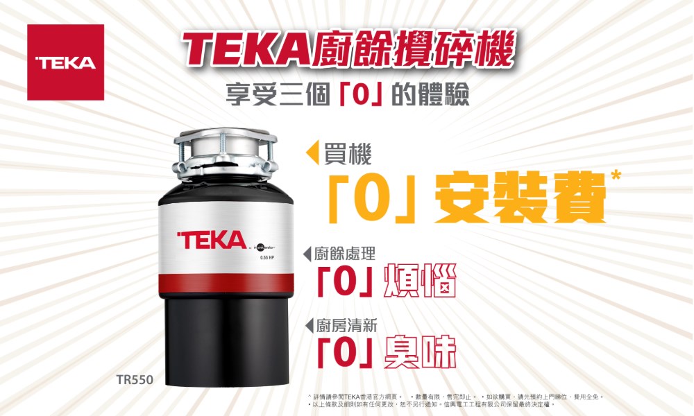 • 購買Teka廚餘攪碎機TR550即享「0」安裝費優惠!(詳情)
